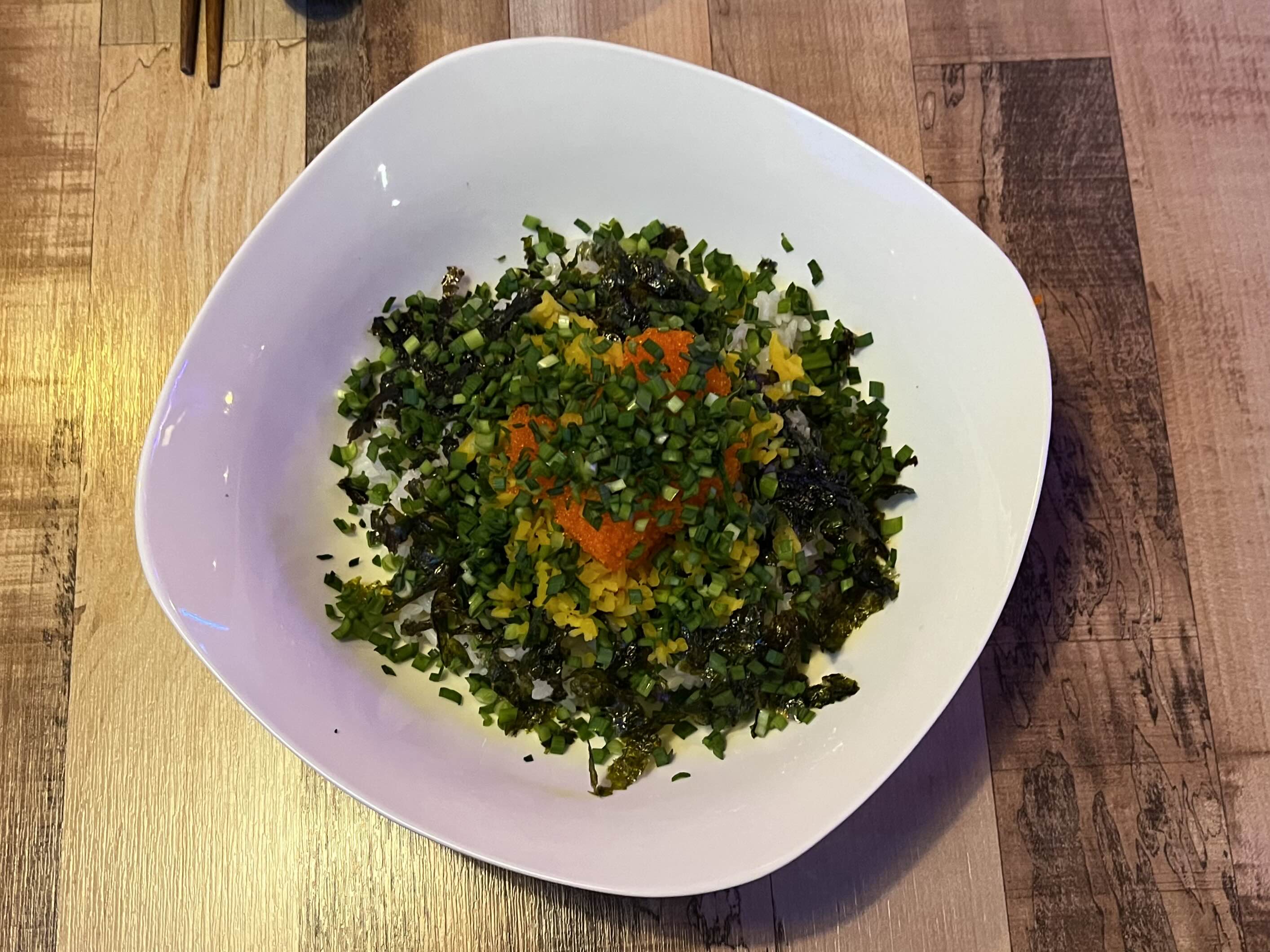 단품과 세트 구성의 차이점은 바로 이 부추 날치알밥!