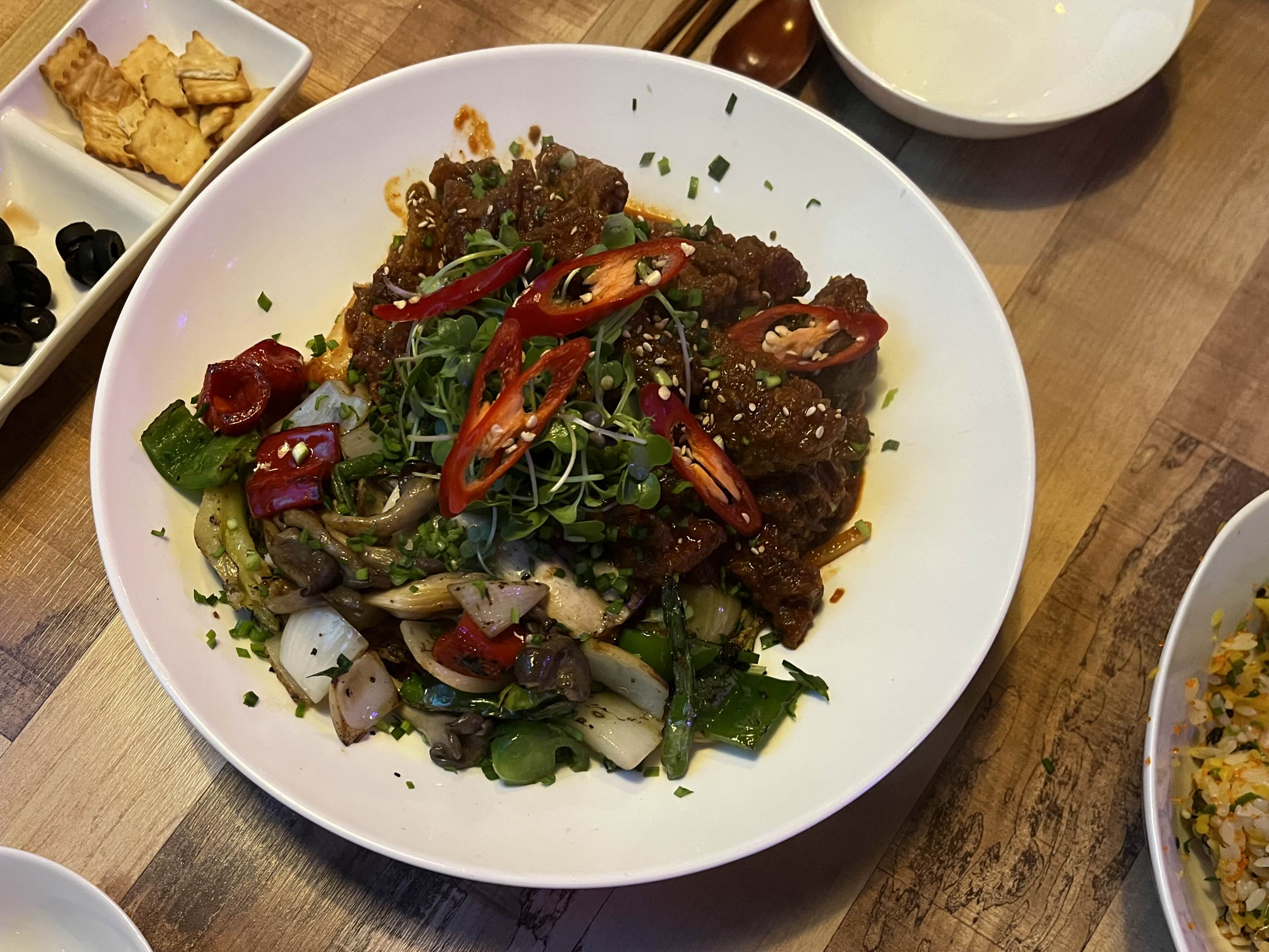 매운 양념 소갈빗살 & 스지찜, 치킨 레터스 랩, 부채살 철판야끼 등등