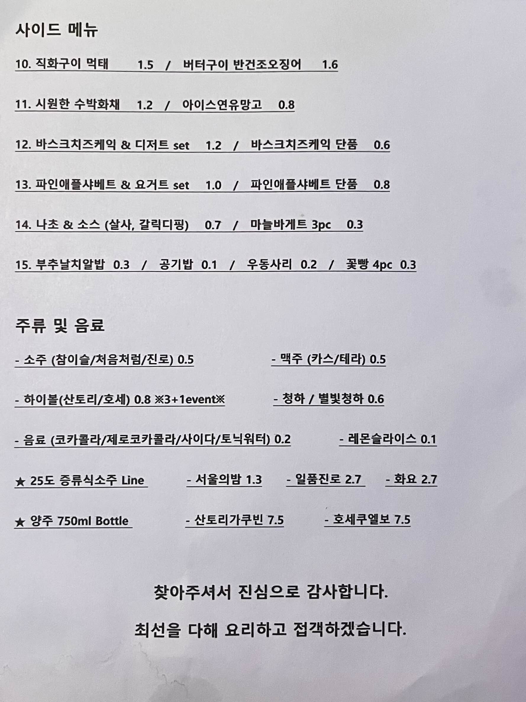 - 영업시간 : 매일 17:30 ~ 02:00 일요일 휴무