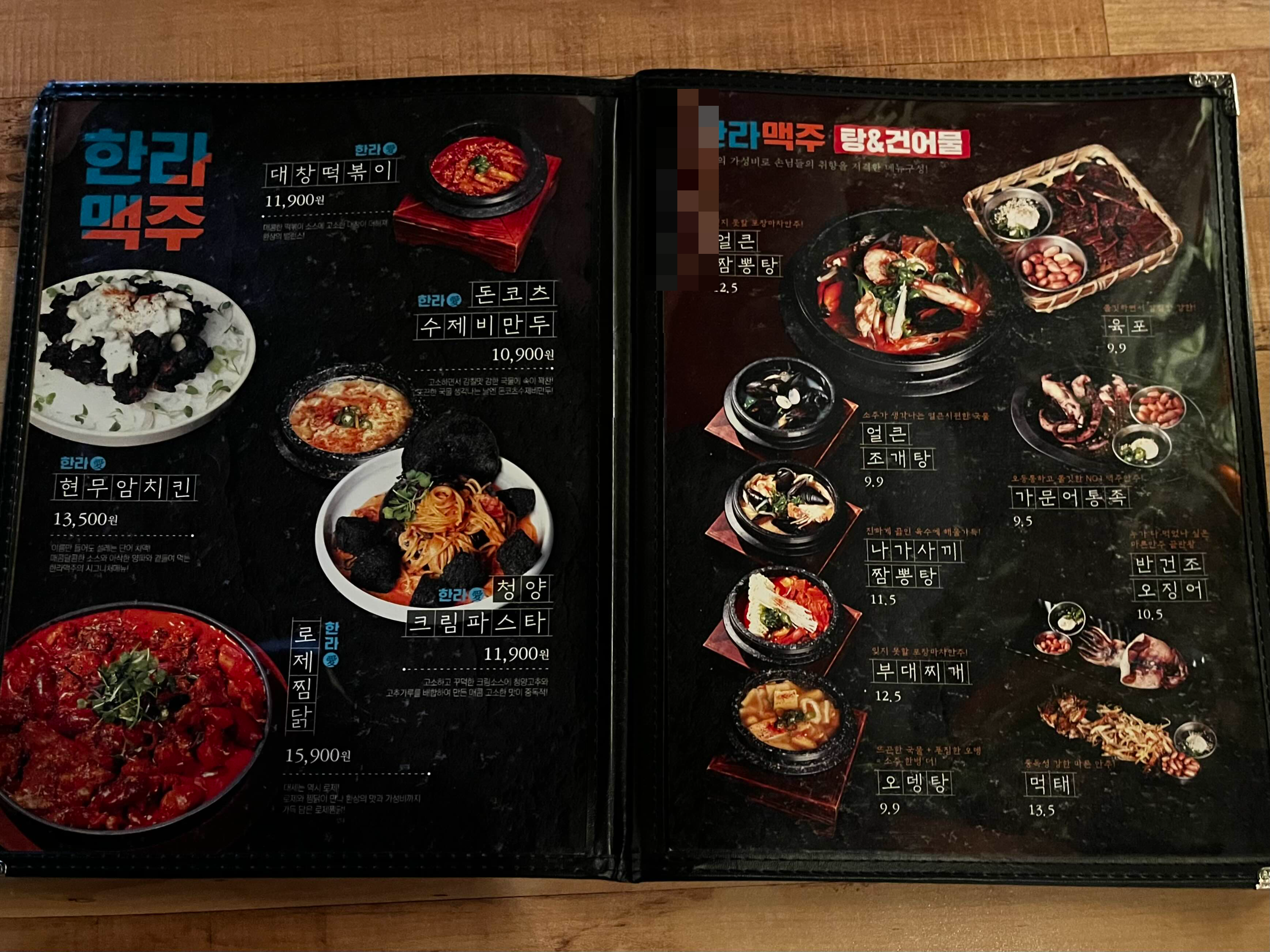 저는 오늘 한라맥주 가장 안 쪽 테이블을 선택!