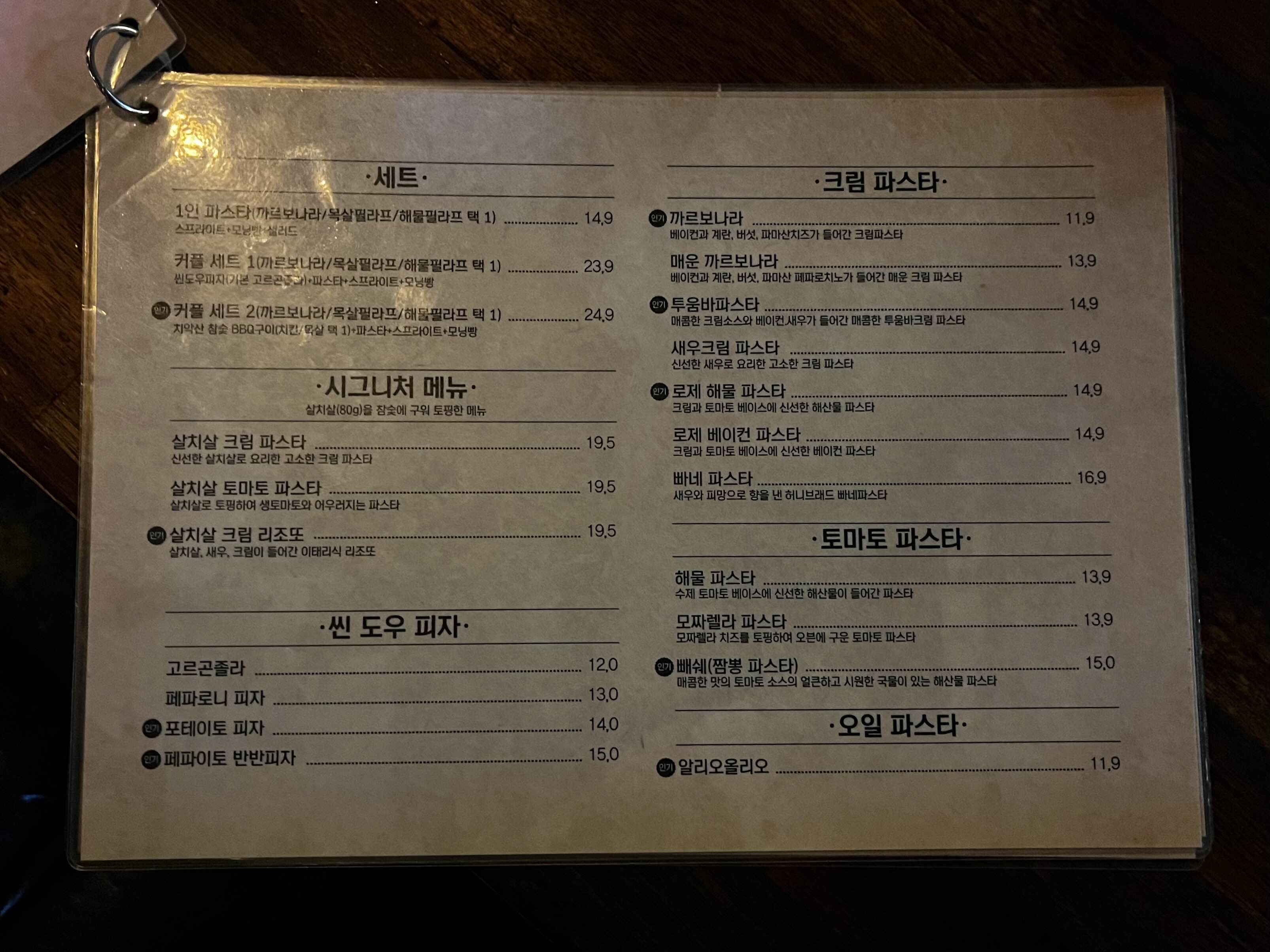 낮에 식사용으로 주문하시면 좋을 듯한 각종 파스타부터