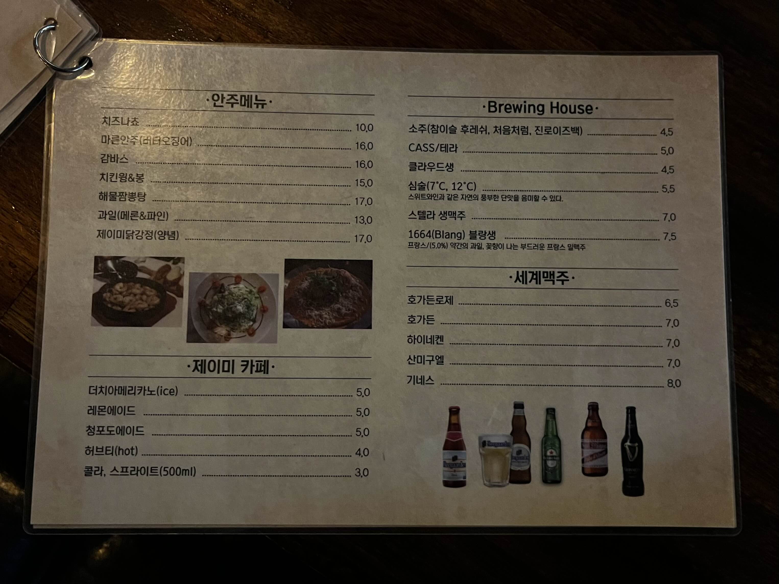 위스키와 맥주, 심지어 카페 메뉴들까지 모두 가능합니다