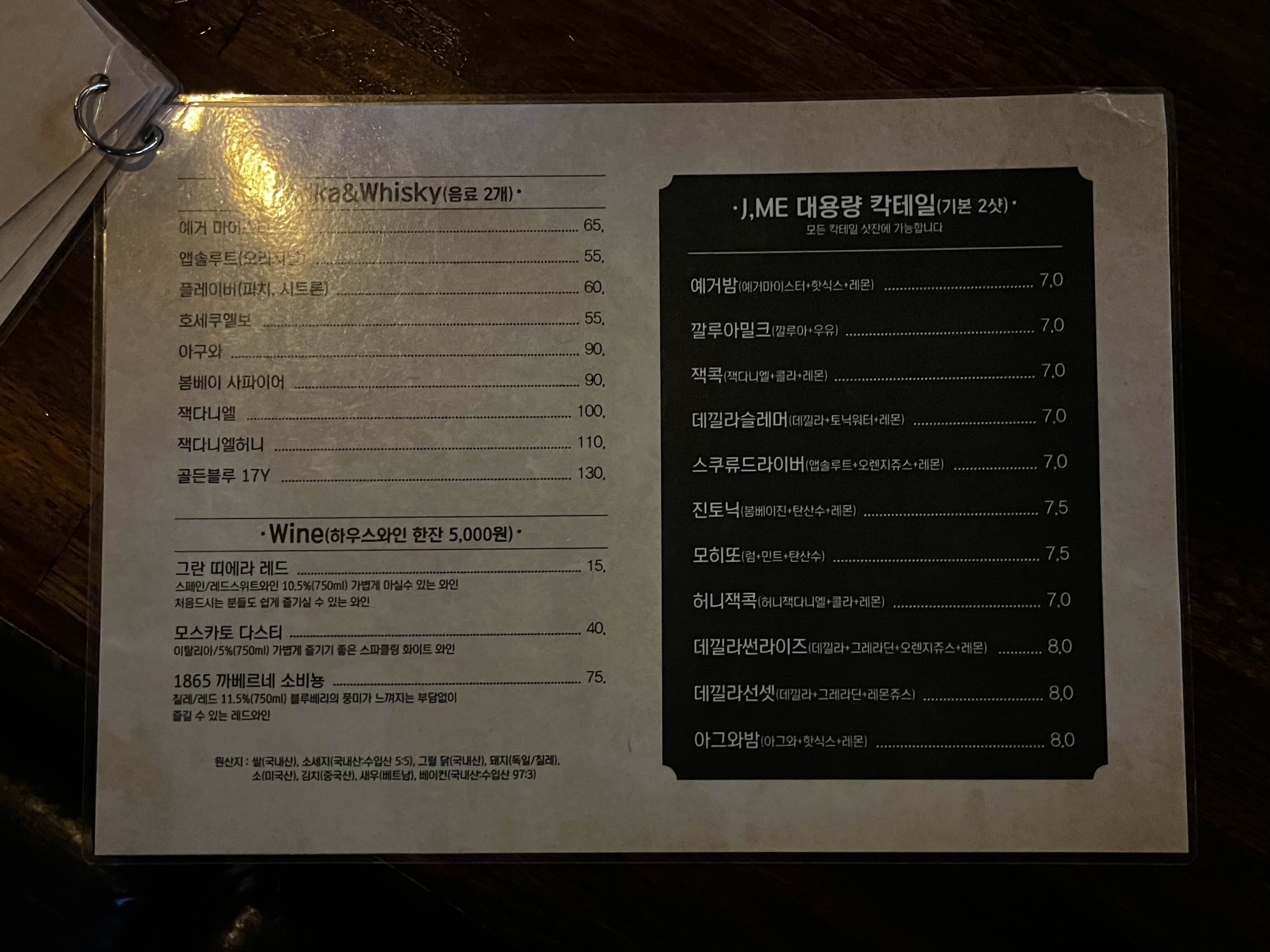양주와 위스키, 와인, 대용량 칵테일 종류까지 다양한 구성이에요 🍺🥂🍹🌈