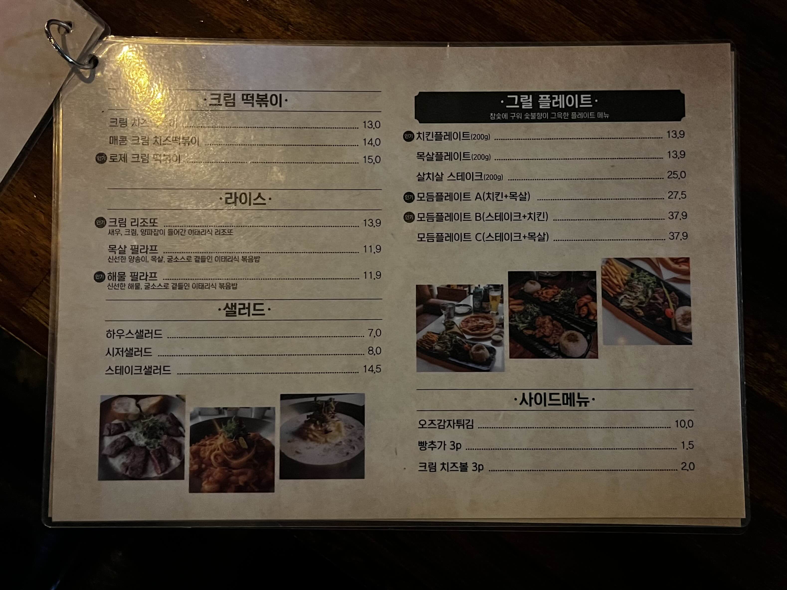 씬 도우 피자들, 크림 떡볶이, 리조또와 필라프 등