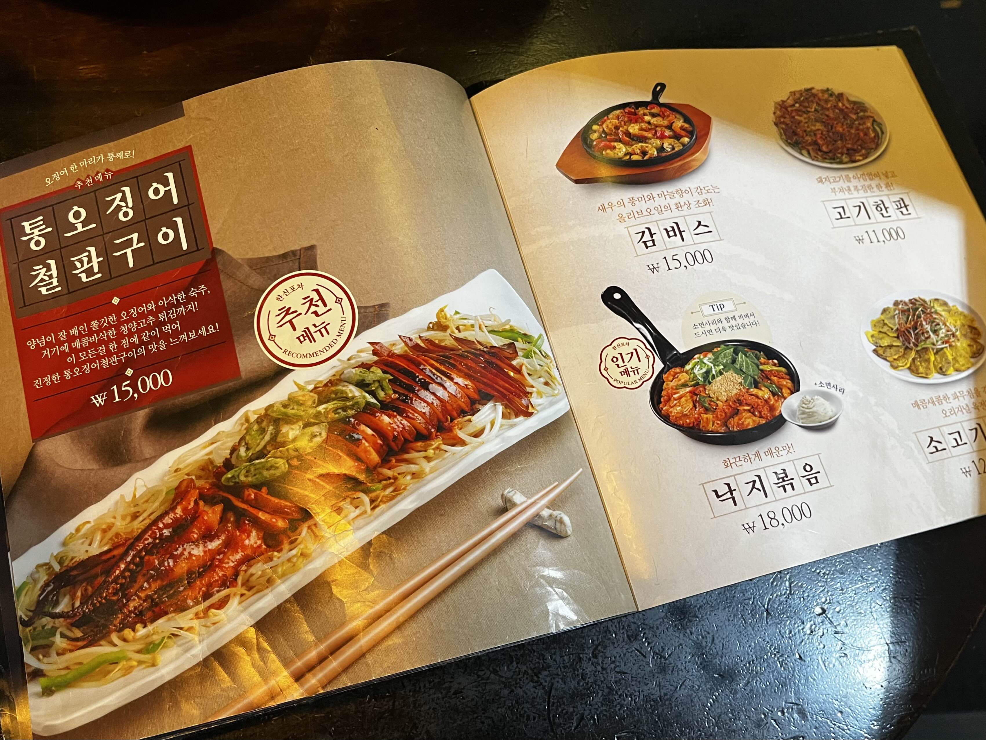 통 오징어 철판구이 / 치즈 돼지 바베큐 / 오돌뼈