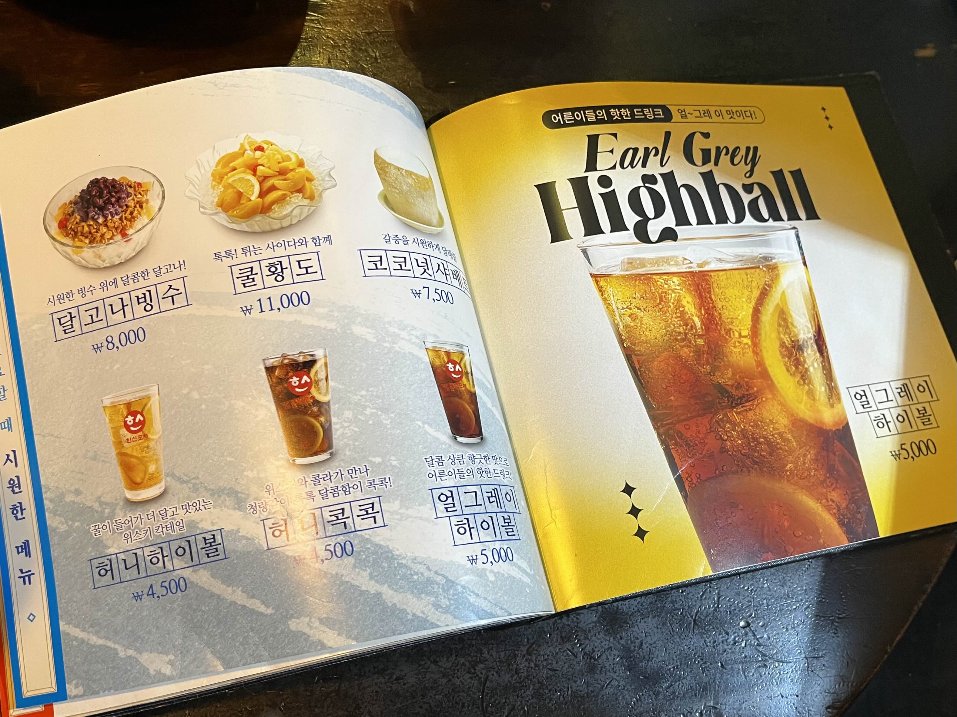 얼그레이 하이볼 / 혼디주 / 소주 / 맥주 / 막걸리 등