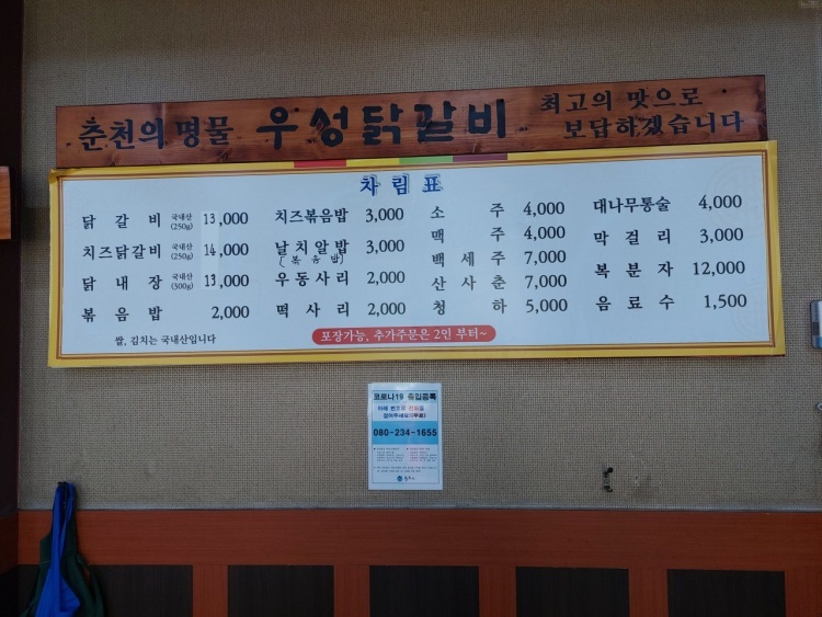 최근 들어 우성닭갈비의 가격이 인상되었다는 슬픈 소식입니다 흑흑