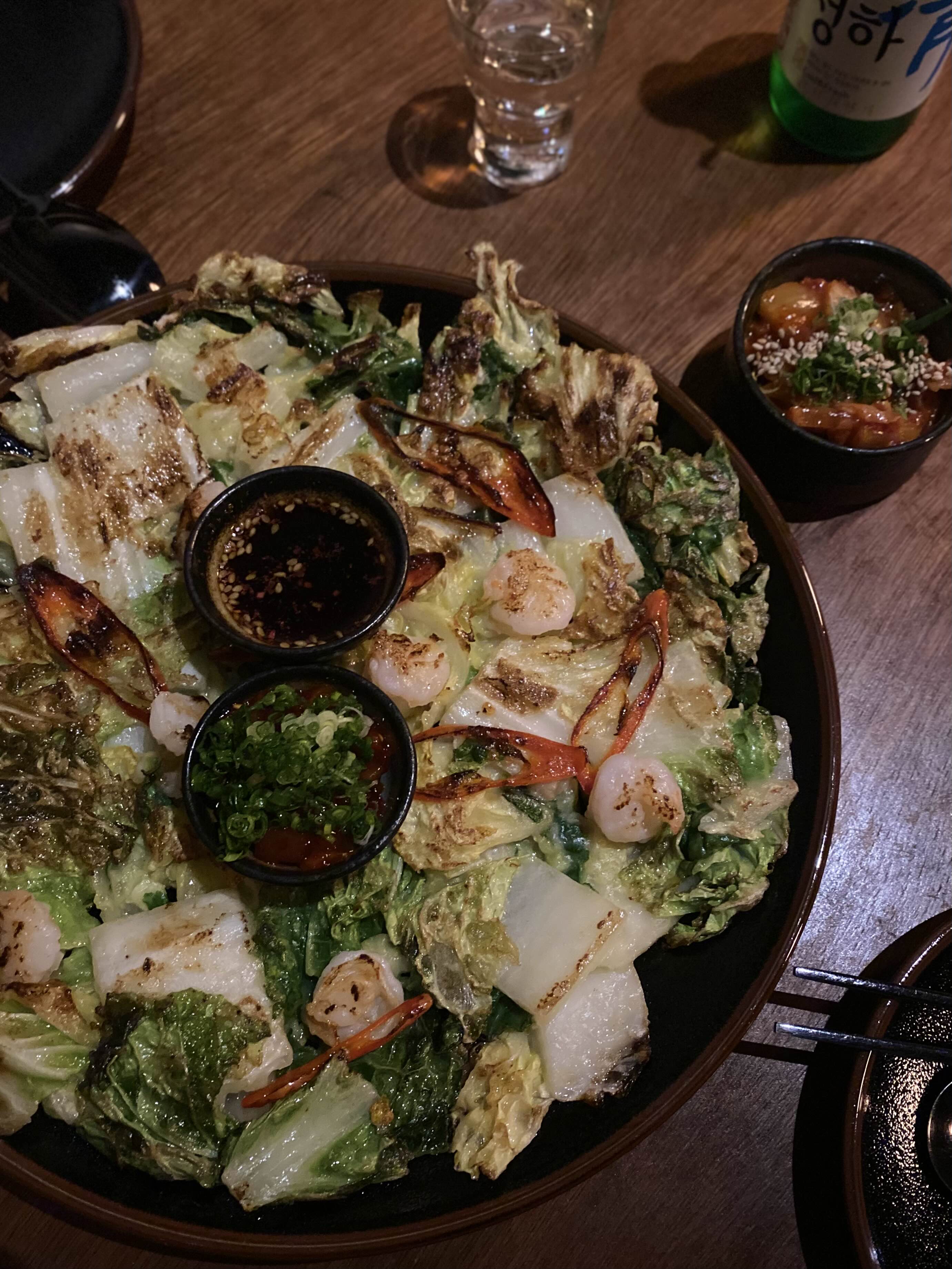 약간 아쉬운 마음으로 새우 배추전을 선택했는데,