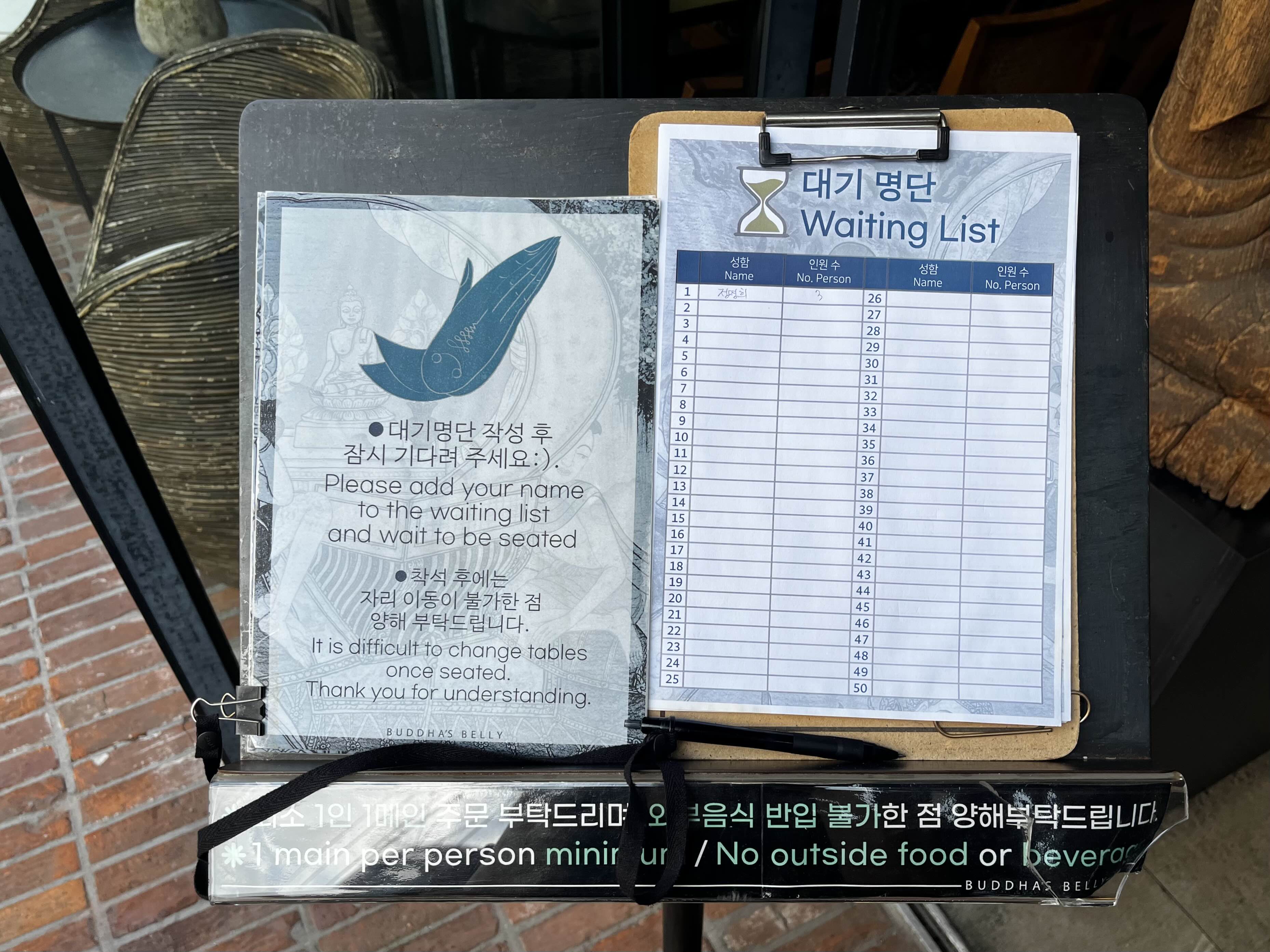 입구 쪽에 대기 명단을 작성할 수 있는 공간이 있었어요