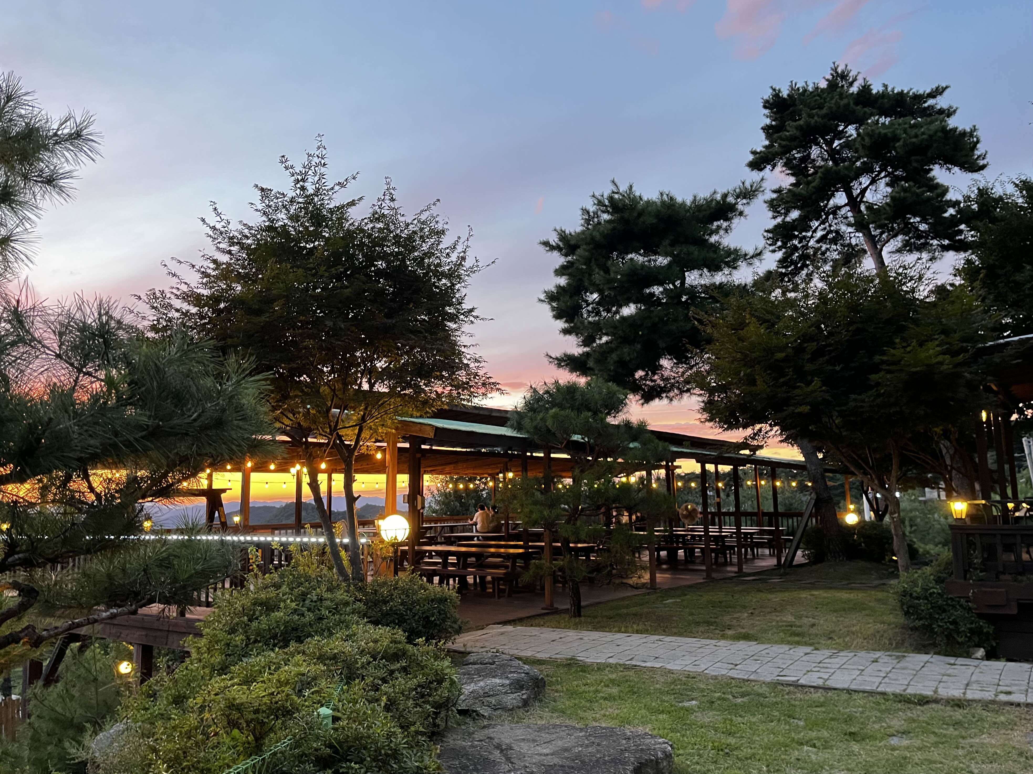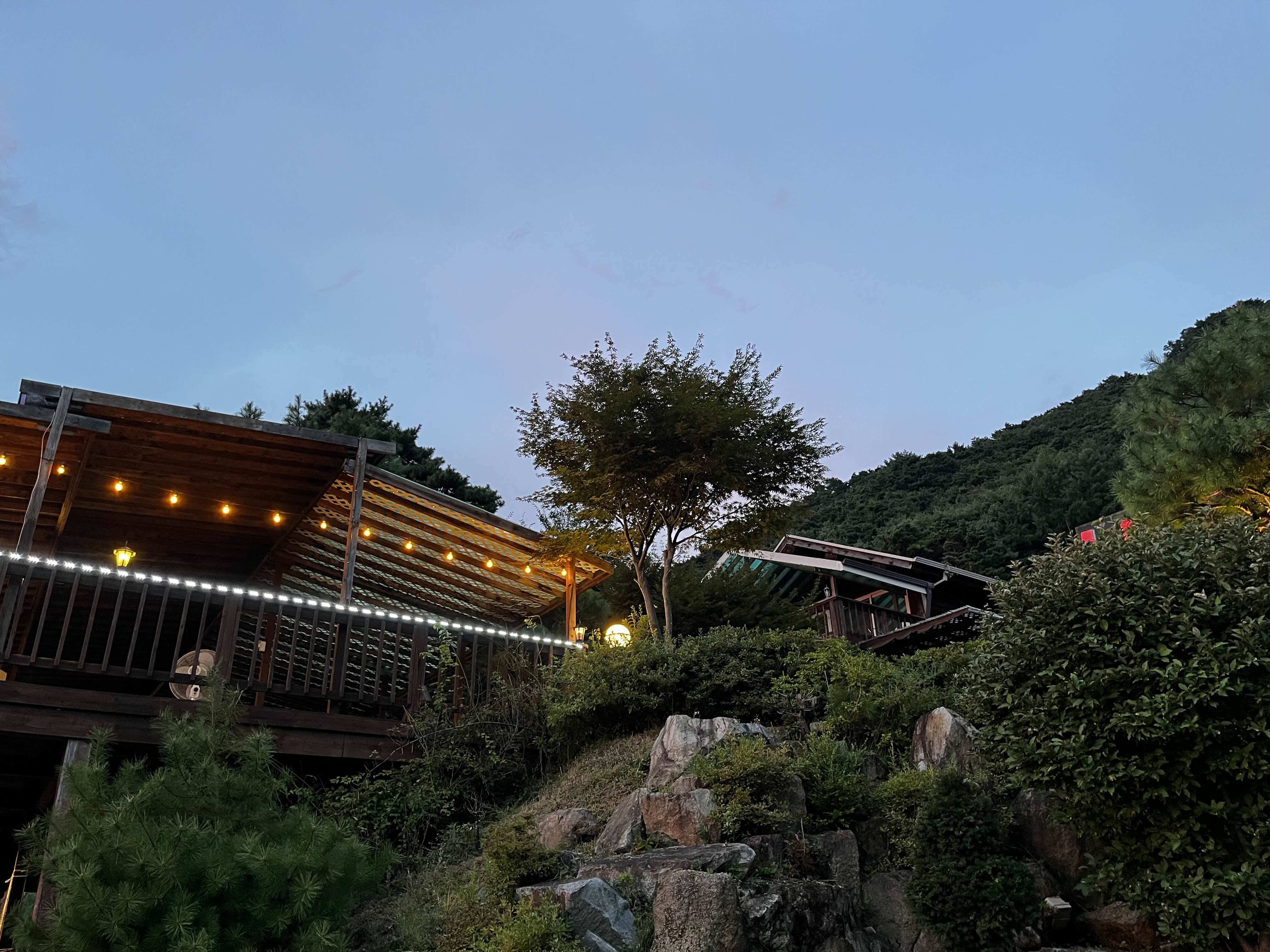 딱 해가 질 무렵이라 노을 진 하늘과 산 배경, 반짝이는 전구가 모두 어우러져 너무 예쁘더라구요 ✨