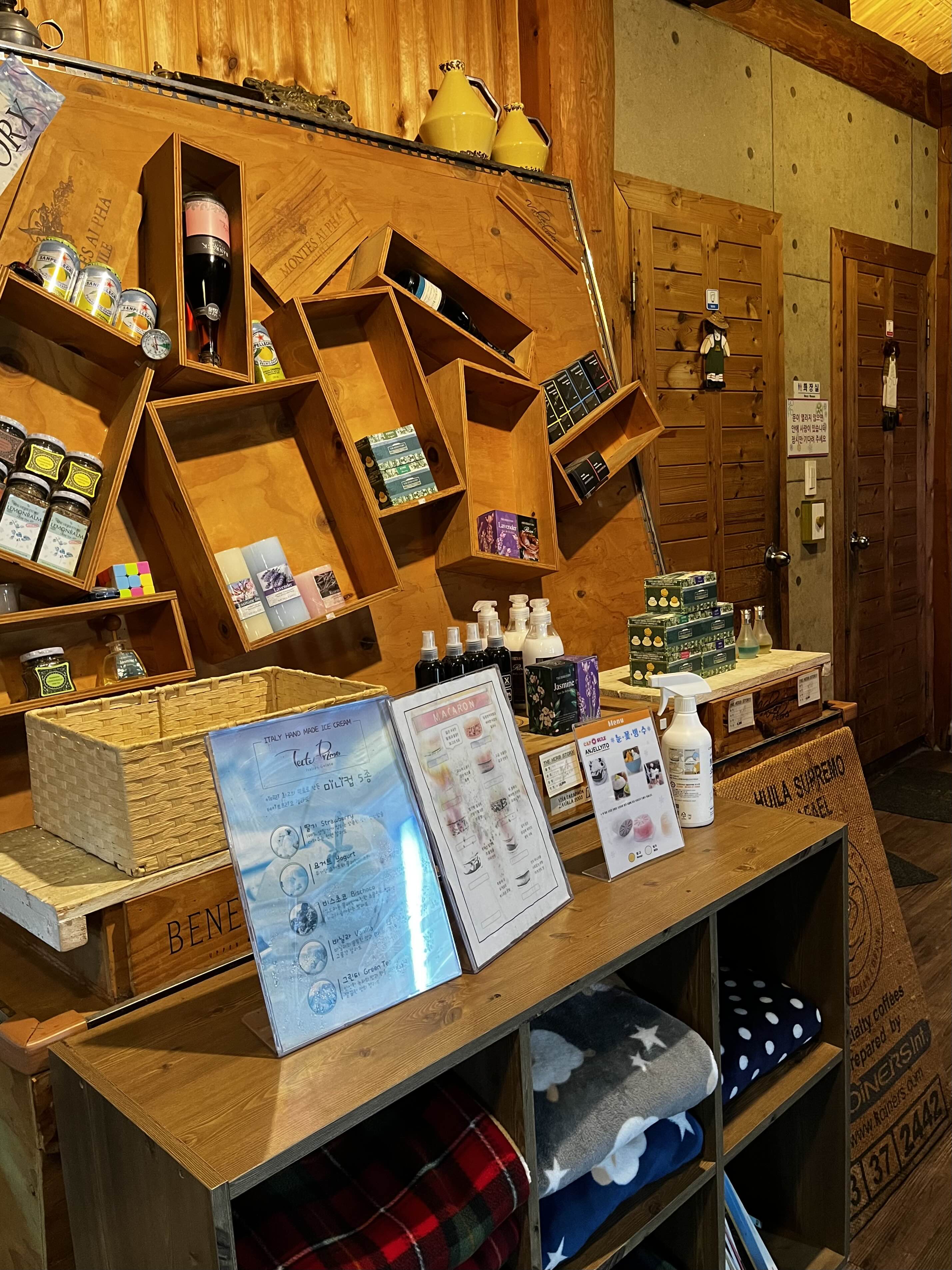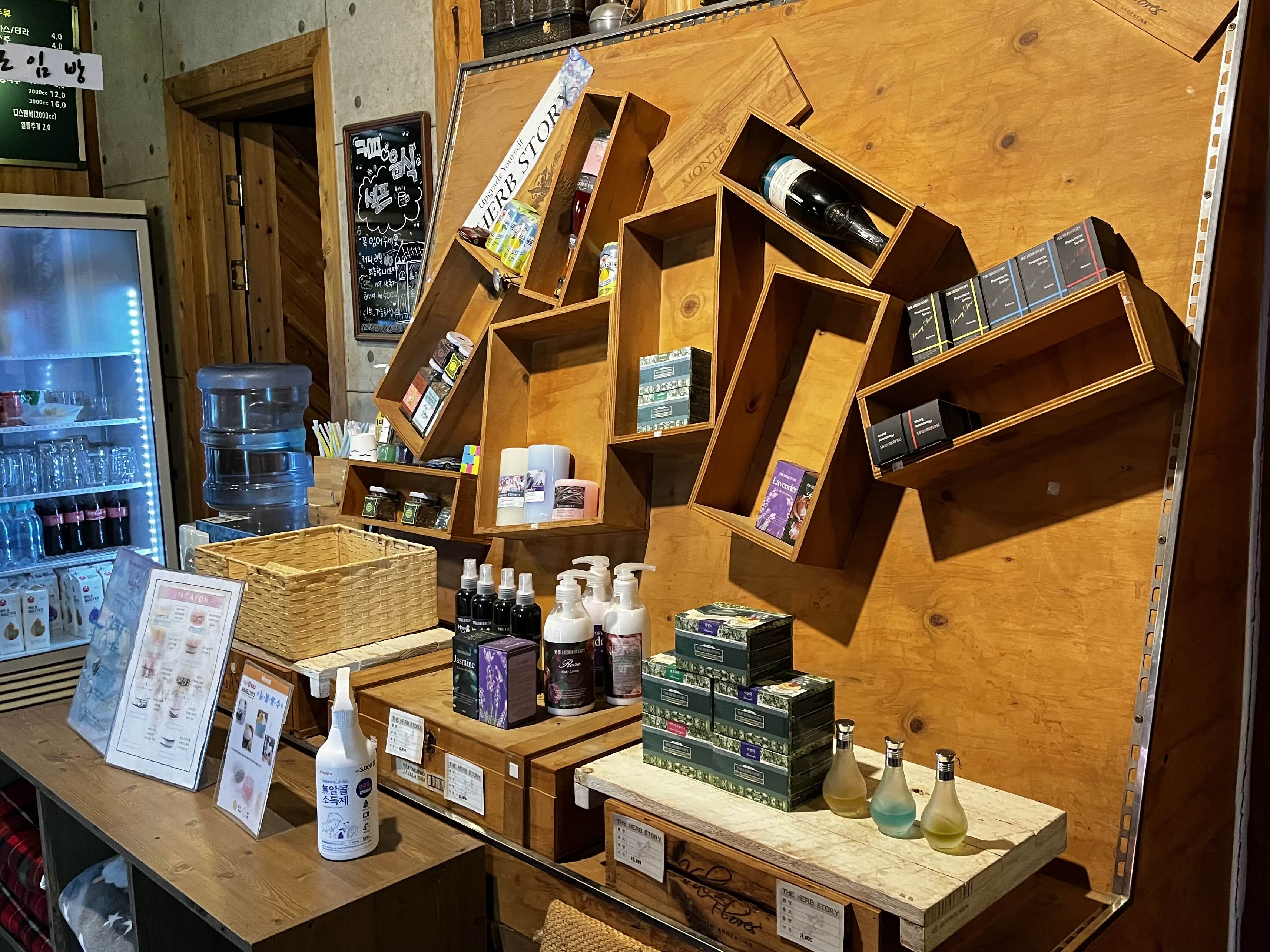 주문을 할 수 있는 카운터 공간에는 카페에서 판매 중인 여러 제품들이 있습니다