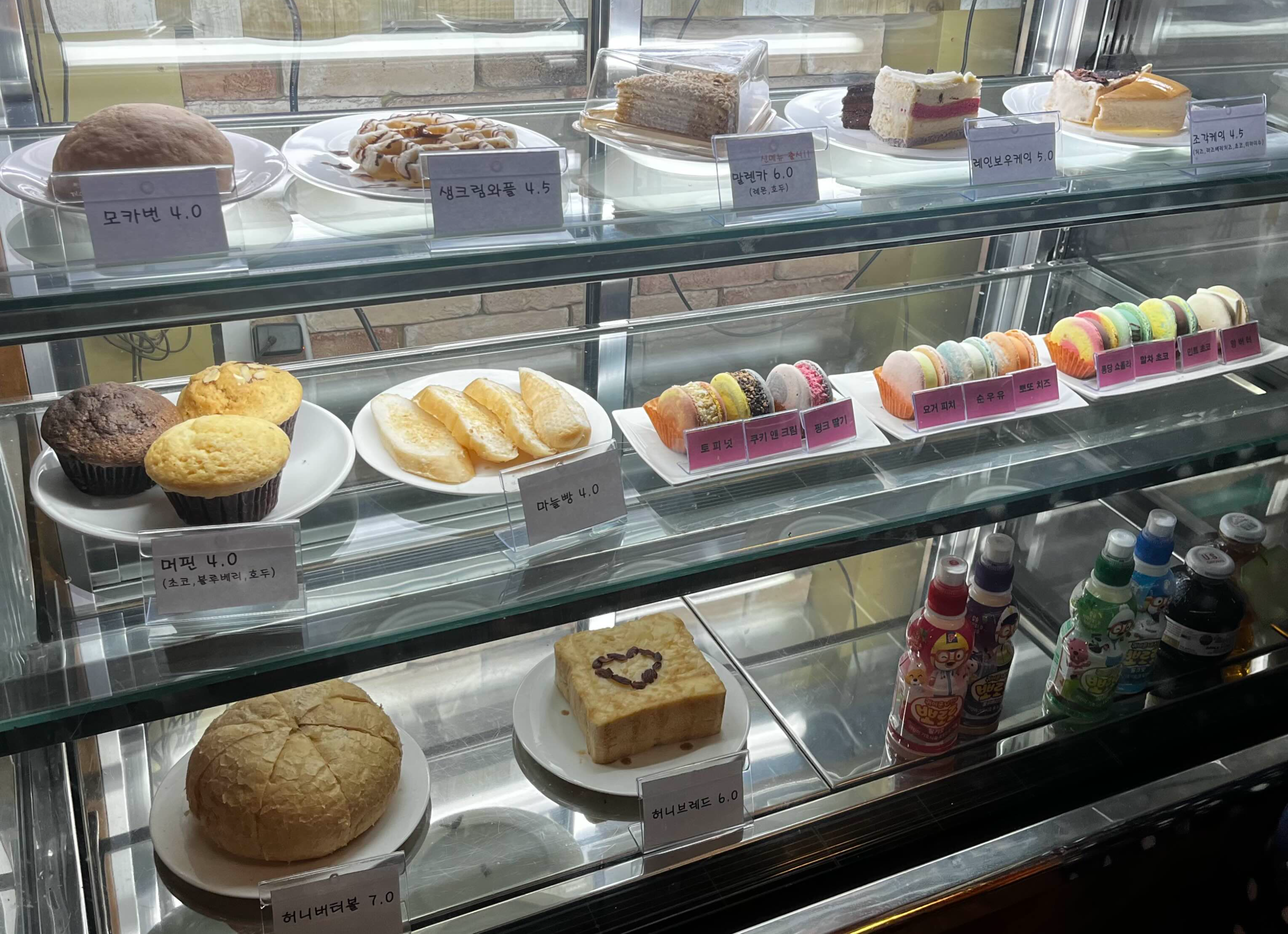 모카번, 생크림 와플, 케이크, 머핀, 마카롱 등 다양합니다