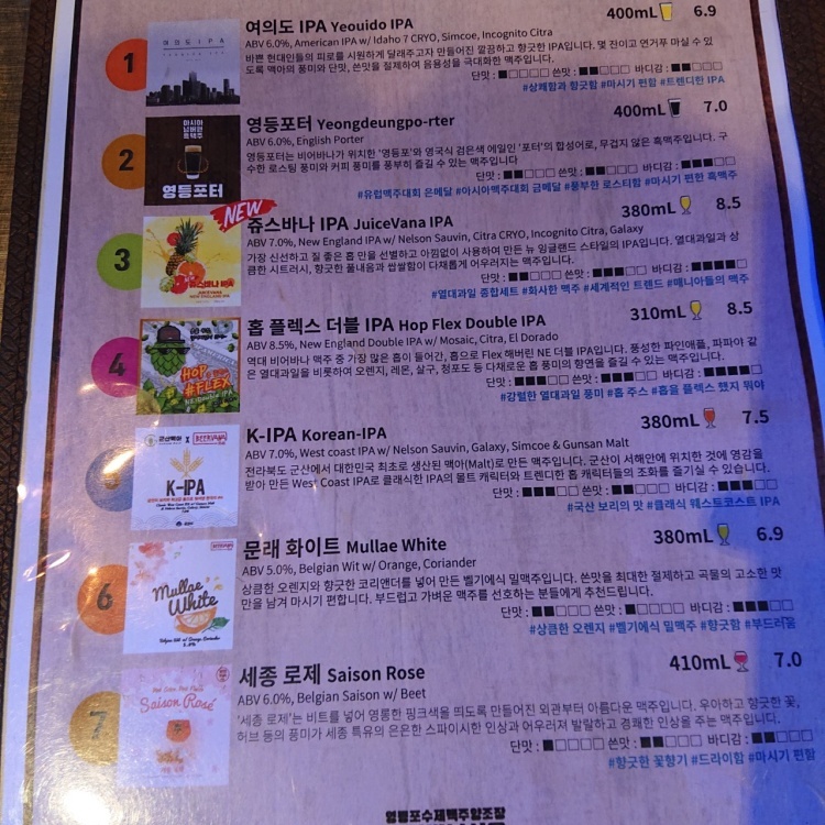 샘플러 중 저의 원픽 수제 맥주는 역시나 영등포터