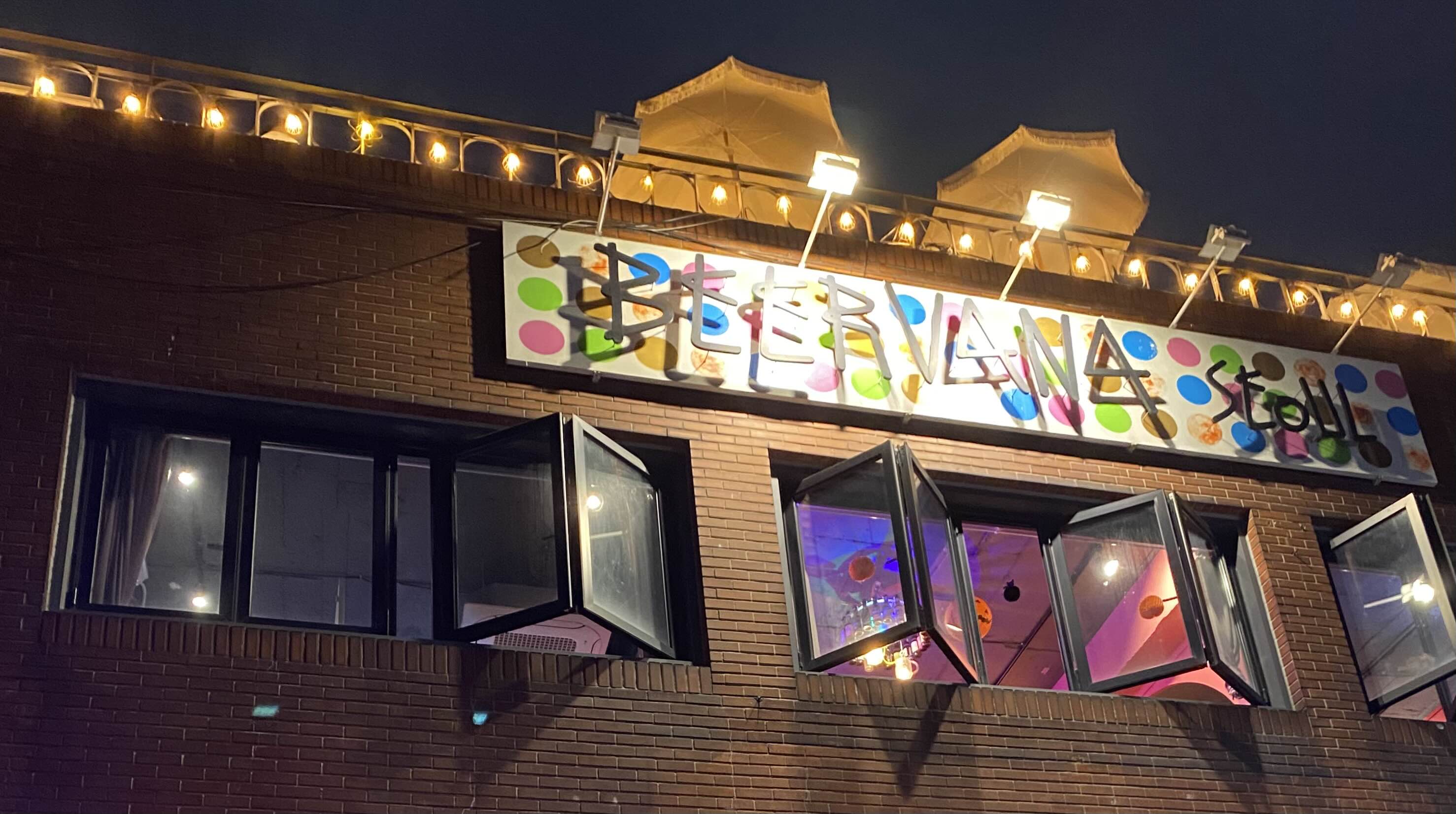해가 지고 조명이 켜진 비어바나 루프탑은