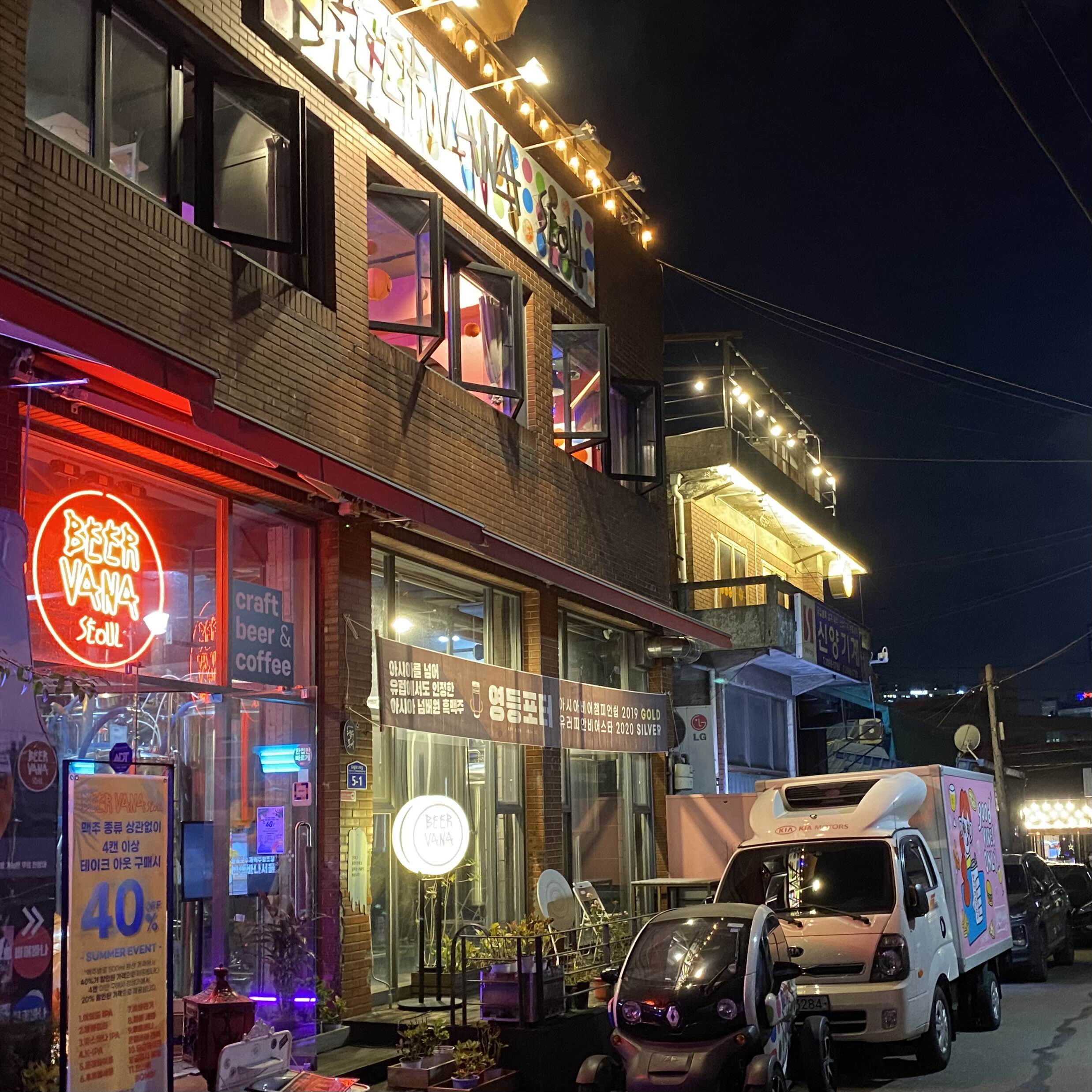 골목길 끝에서 마주한 비어바나의 외관 모습입니다