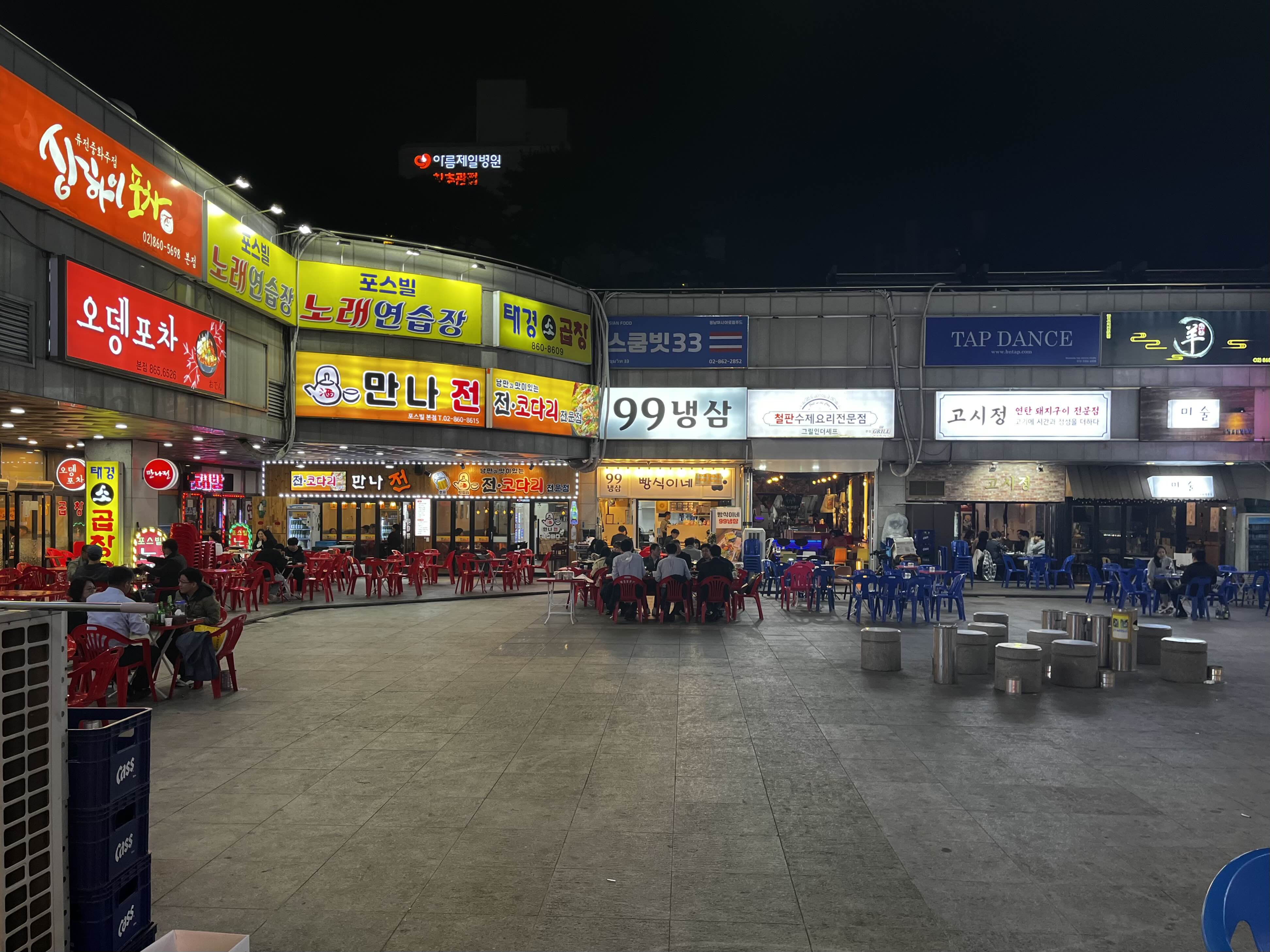 입구에 있는 계단을 통해 지하로 내려가면 반짝반짝한 야장 식당들이 즐비하고 있어요 ✨
