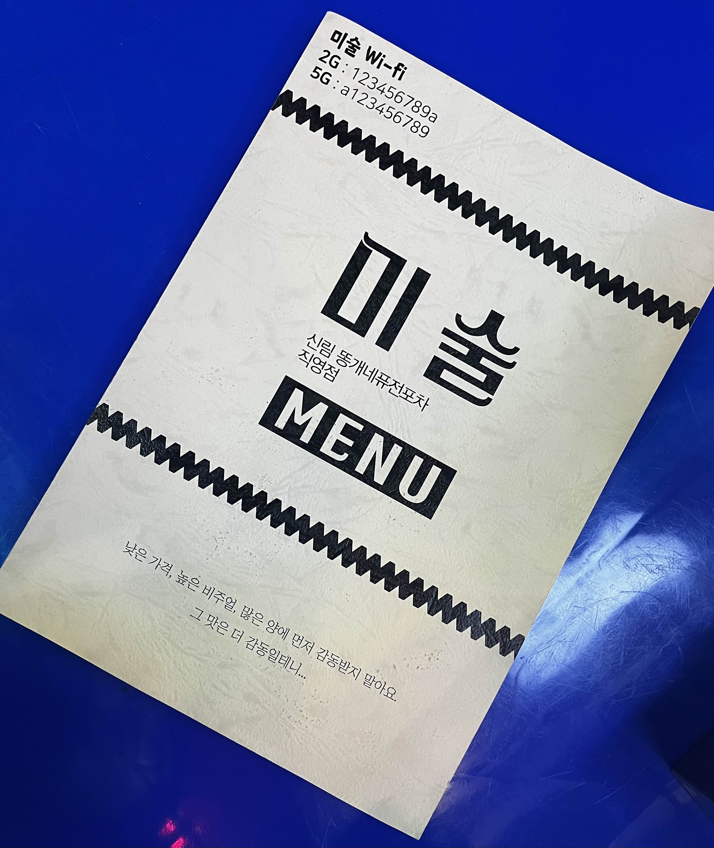 나중에 알게 된 사실인데 미술은 신림 유명 맛집인 "똥개네 퓨전포차"의 직영점이라고 해요