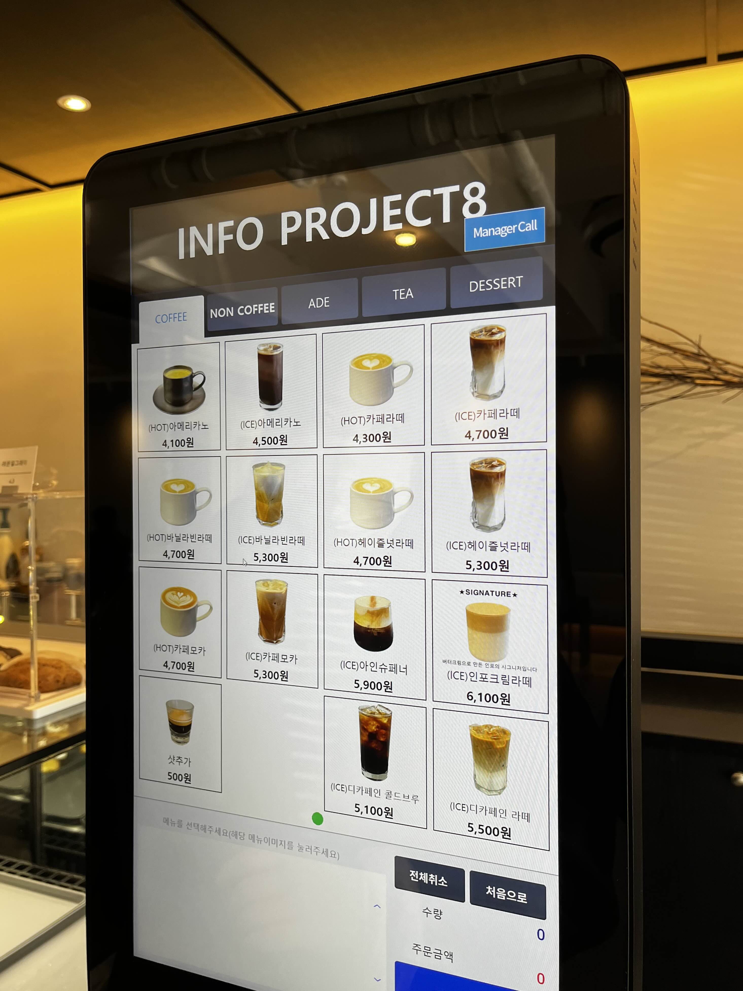 카페 인포의 음료 메뉴 모습입니다