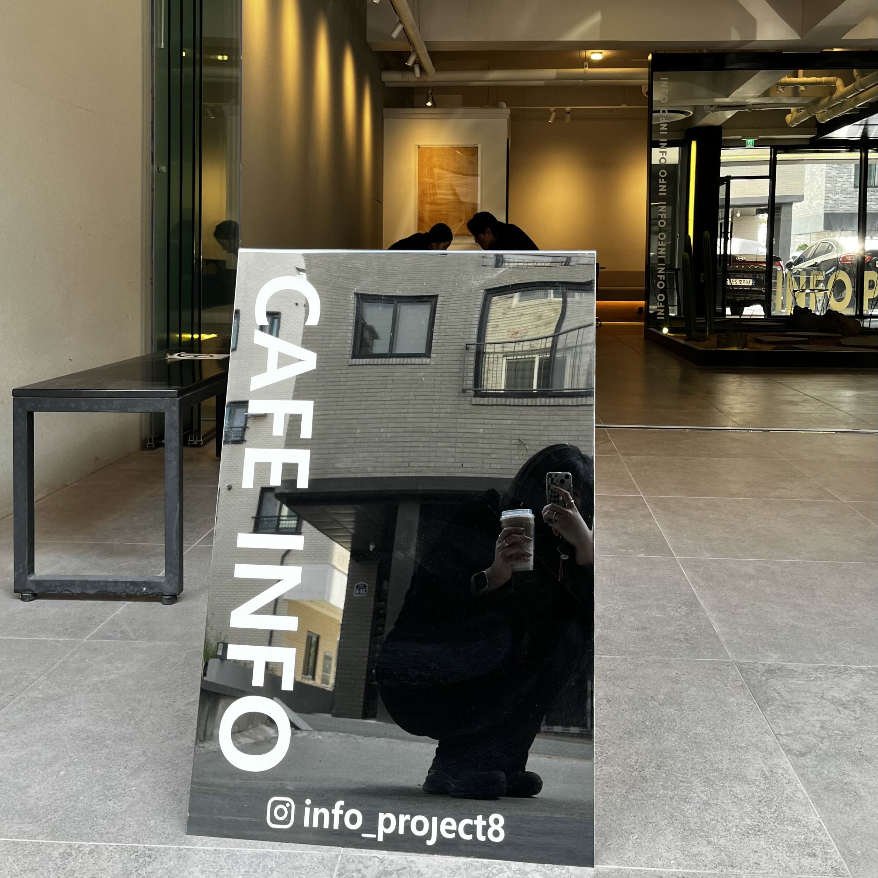 마지막으로, 카페 입구에 있는 힙한 입간판 거울에서도 한 컷 남겨주세요 📸✨