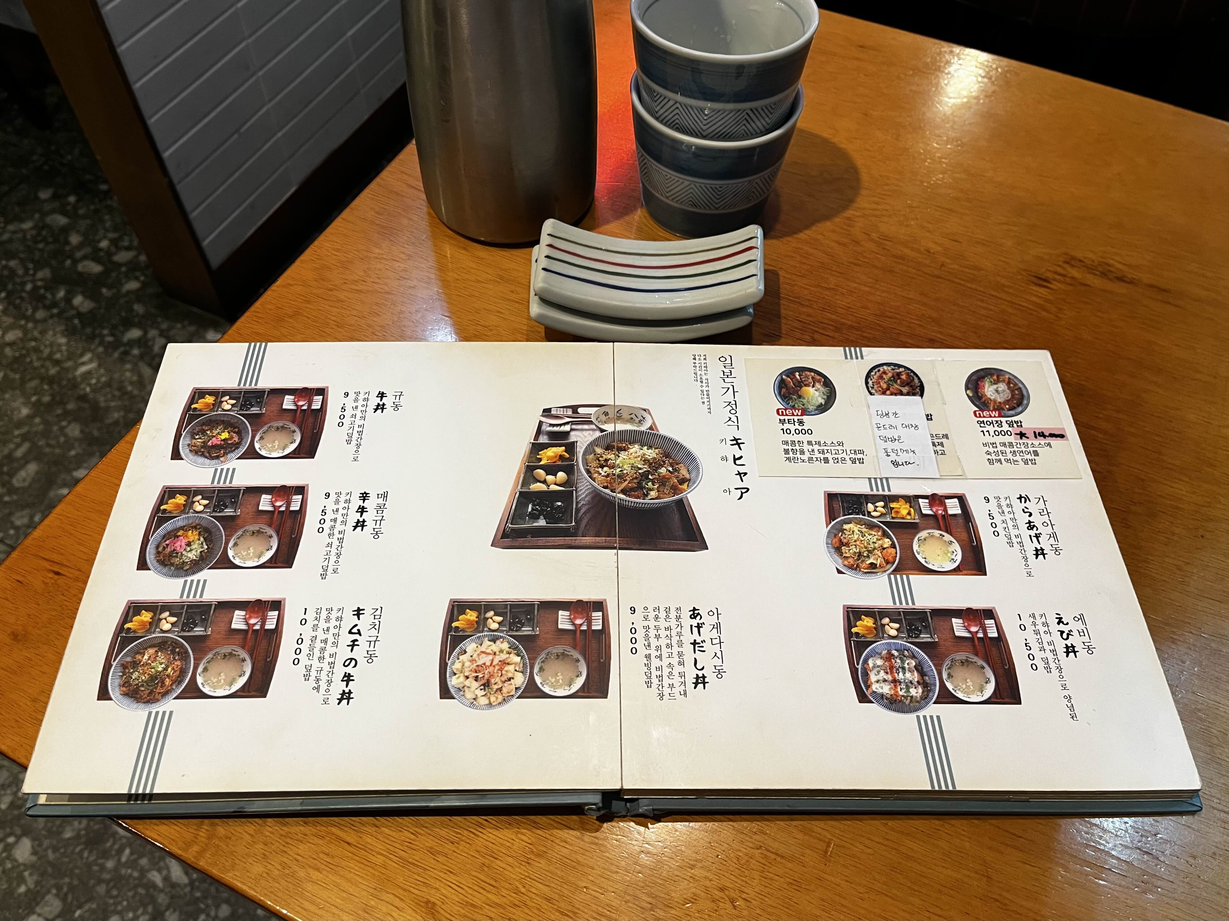 규동 / 매콤 규동 / 김치 규동 / 아게다시동 / 가라아게동 / 에비동