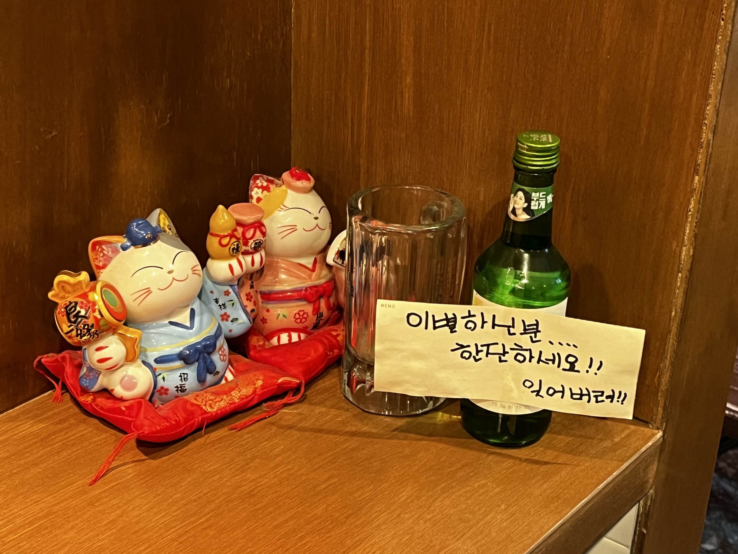 다찌석 구석에는 일본 느낌의 소품과 이별주까지.. ㅎㅎ..